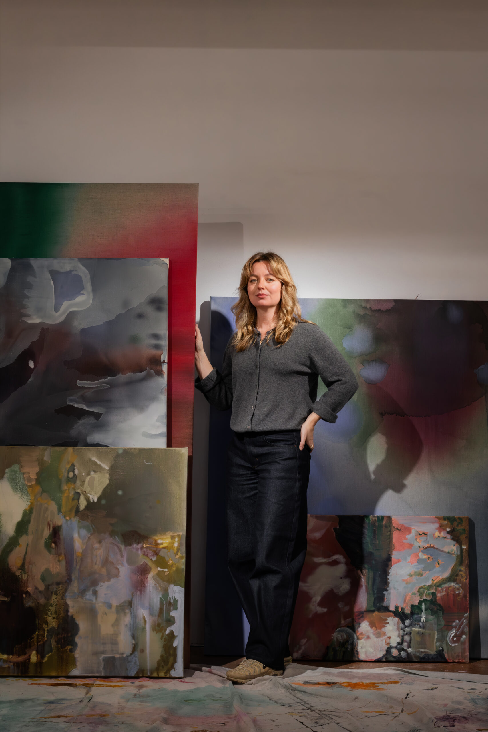 I start the work without knowing what it will look like when it’s finished. As the painting develops, I’m constantly adjusting things: colour, form, density; so there’s actually a lot of decision-making happening. But those decisions come from being with the painting and responding to it. There are also moments where I deliberately pause or hold back. That’s quite important, because it stops me from resolving the work too quickly and gives space for something else to come through
